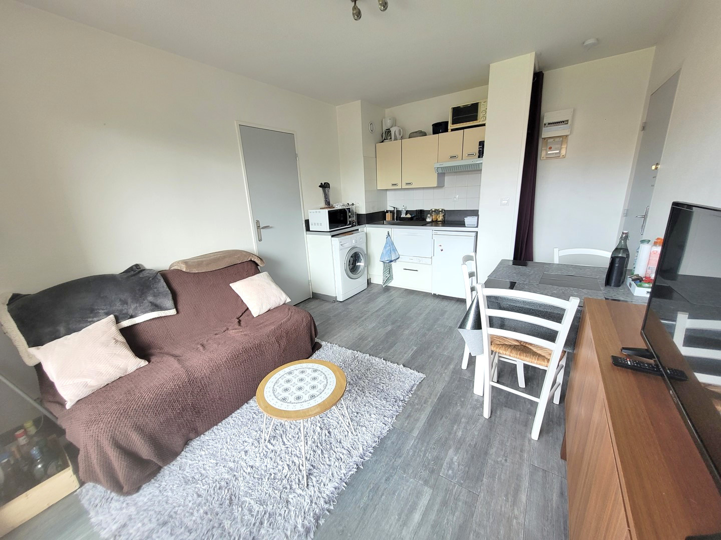 A LOUER appartement deux pièces environ 25m², avec loggia, comprenant : une pièce de vie ouverte sur une cuisine équipée, une chambre, une salle d'eau avec WC. Loué meublé. Parking. Résidence avec ascenseur. ~ Disponibilité Février 2026