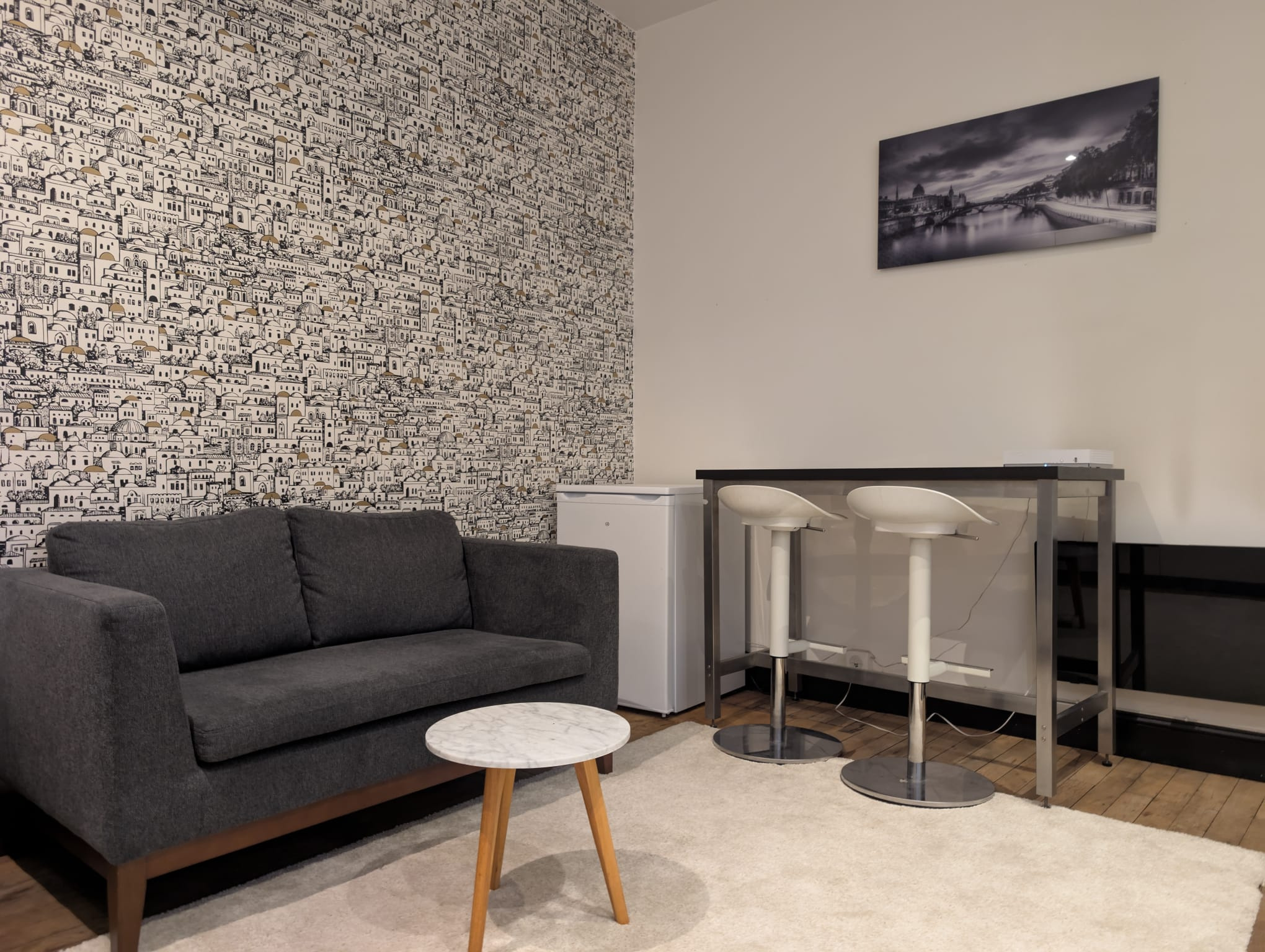 MAISON comprenant, au rez-de-chaussée, un séjour-salon avec espace cuisine aménagée, un couloir avec placard donnant accès à une salle d'eau avec WC et à la cour extérieure. A l'étage, une chambre avec placard et une cabine pouvant faire office de chambre d'appoint, de bureau ou dressing.