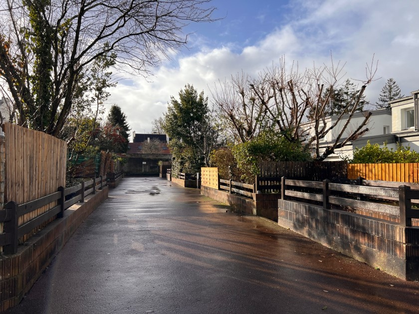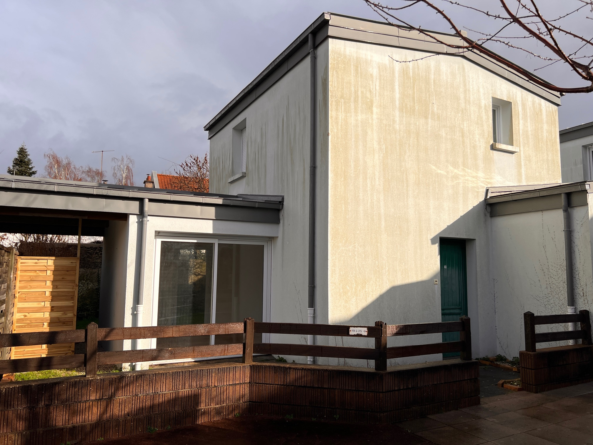 À l’étage : deux chambres, une salle de bain et un placard sur le palier.
