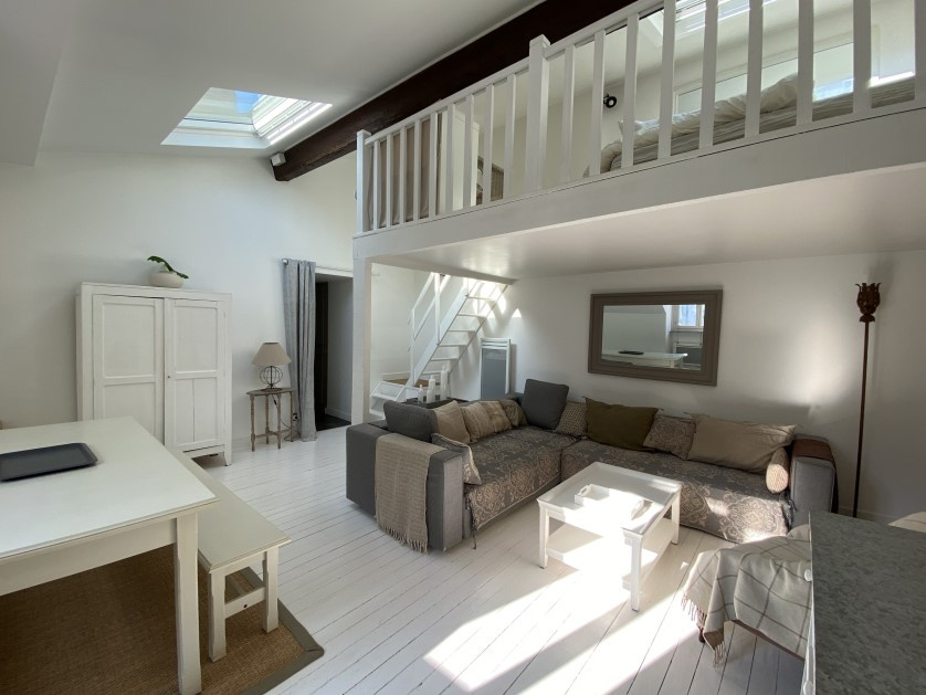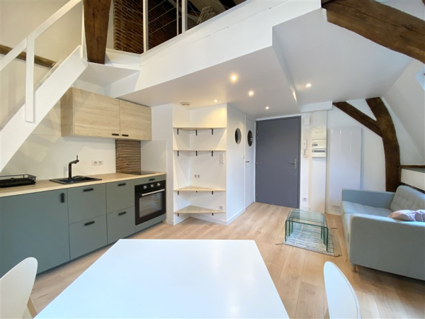 Au 3ème Etage, un appartement MEUBLE et EQUIPE comprenant un SAS d'entrée, une cuisine aménagée et équipée, un salon/séjour, un espace nuit en mezzanine, une salle d'eau, un wc indépendant.