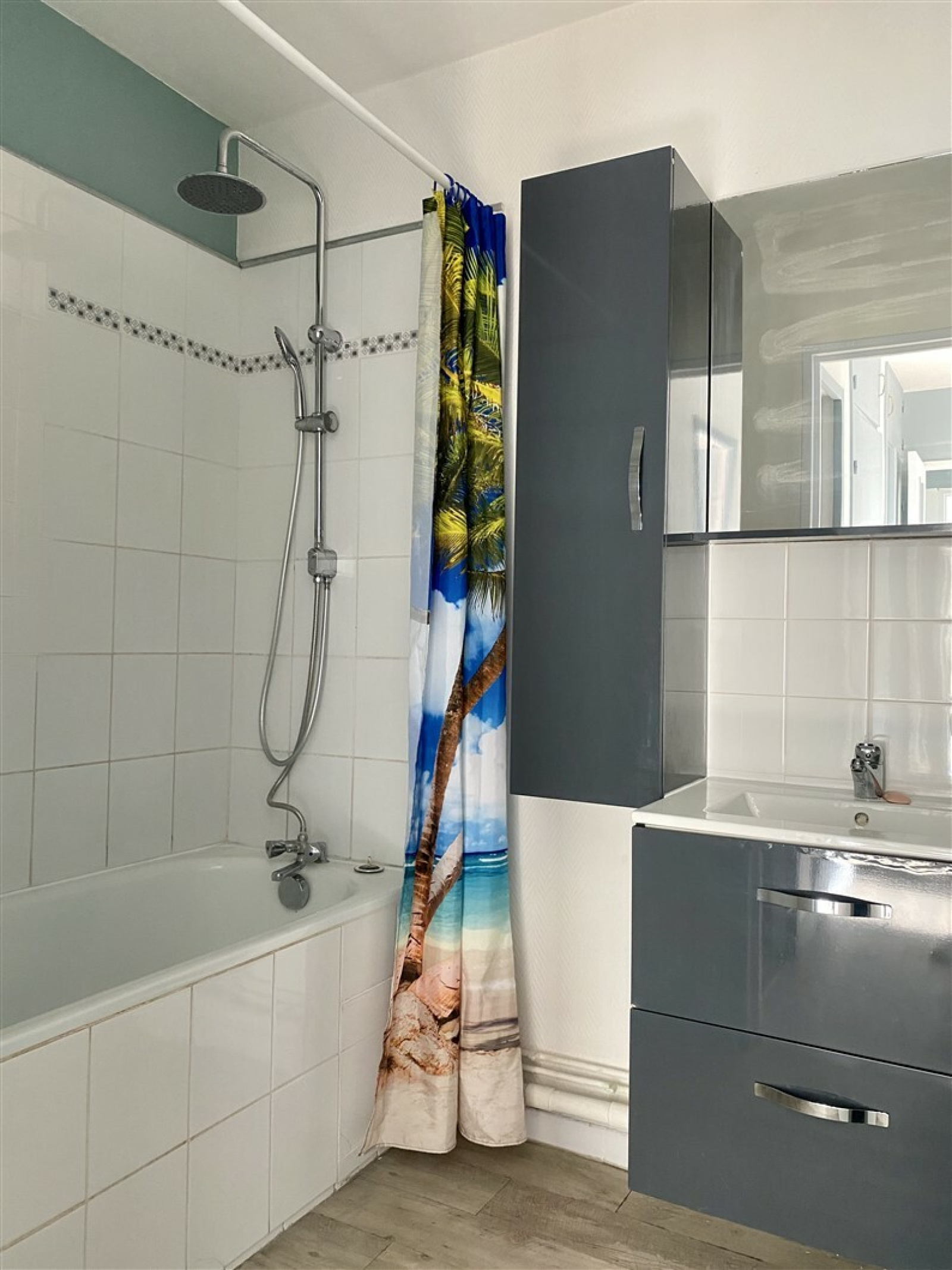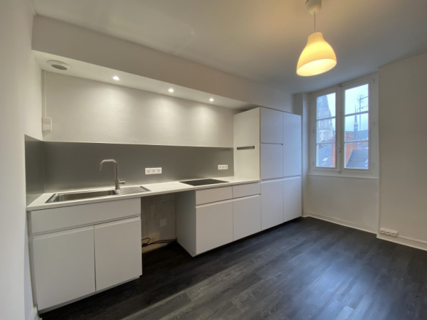 Une entrée, une cuisine séparée aménagée et équipée, un salon, deux chambres, une salle de bain et un WC.