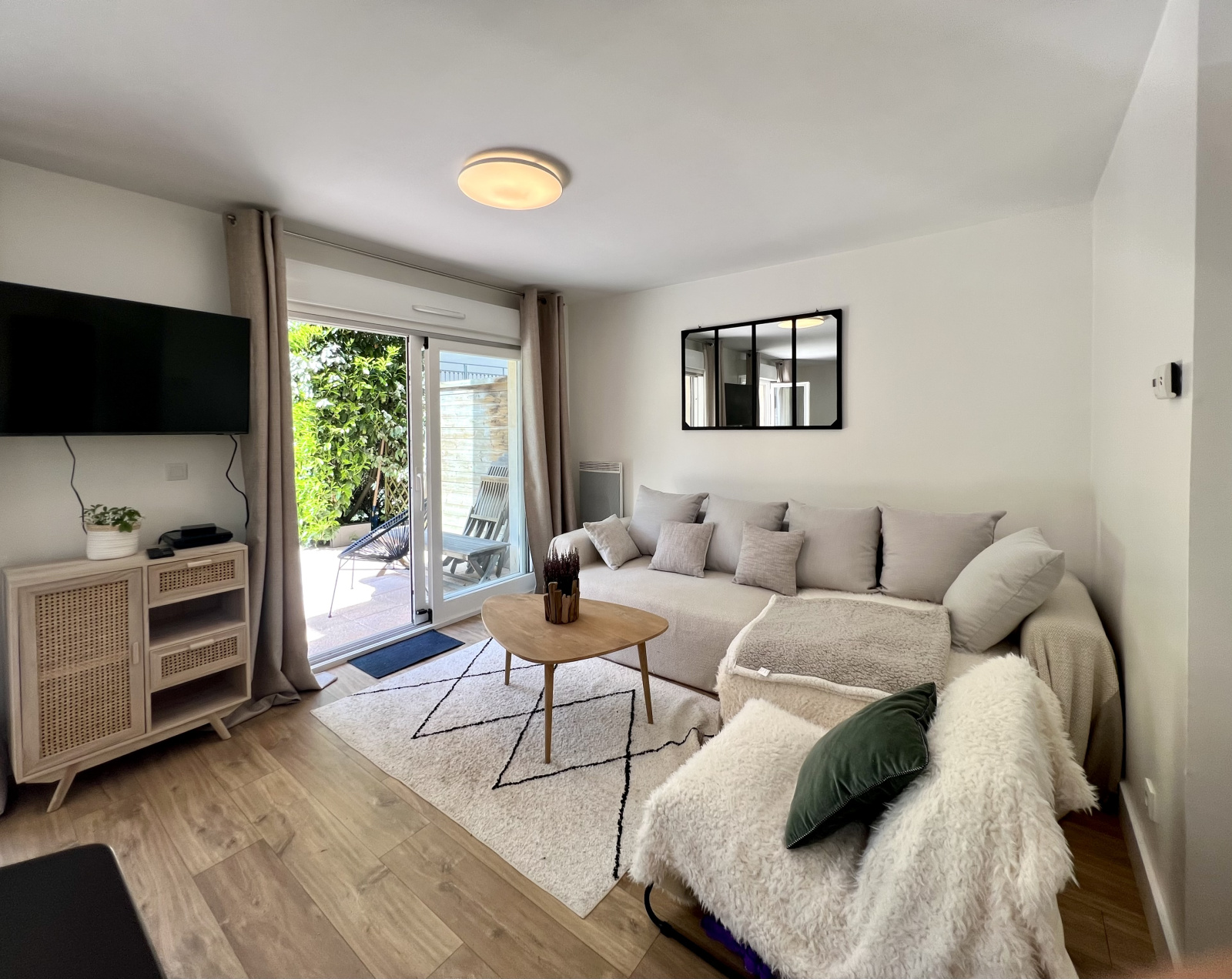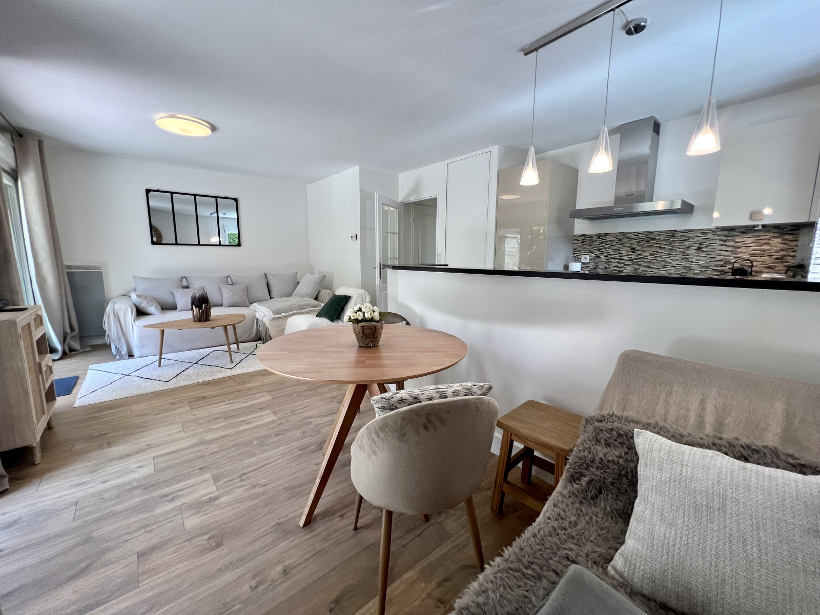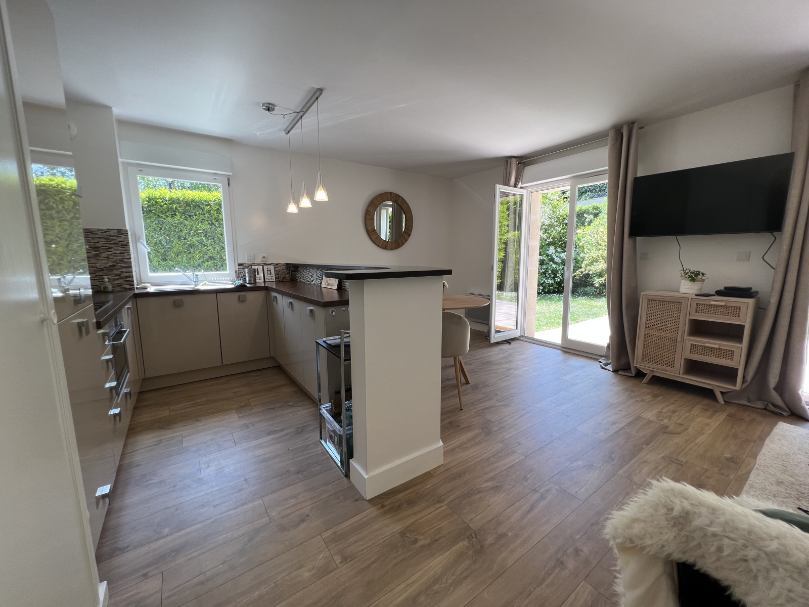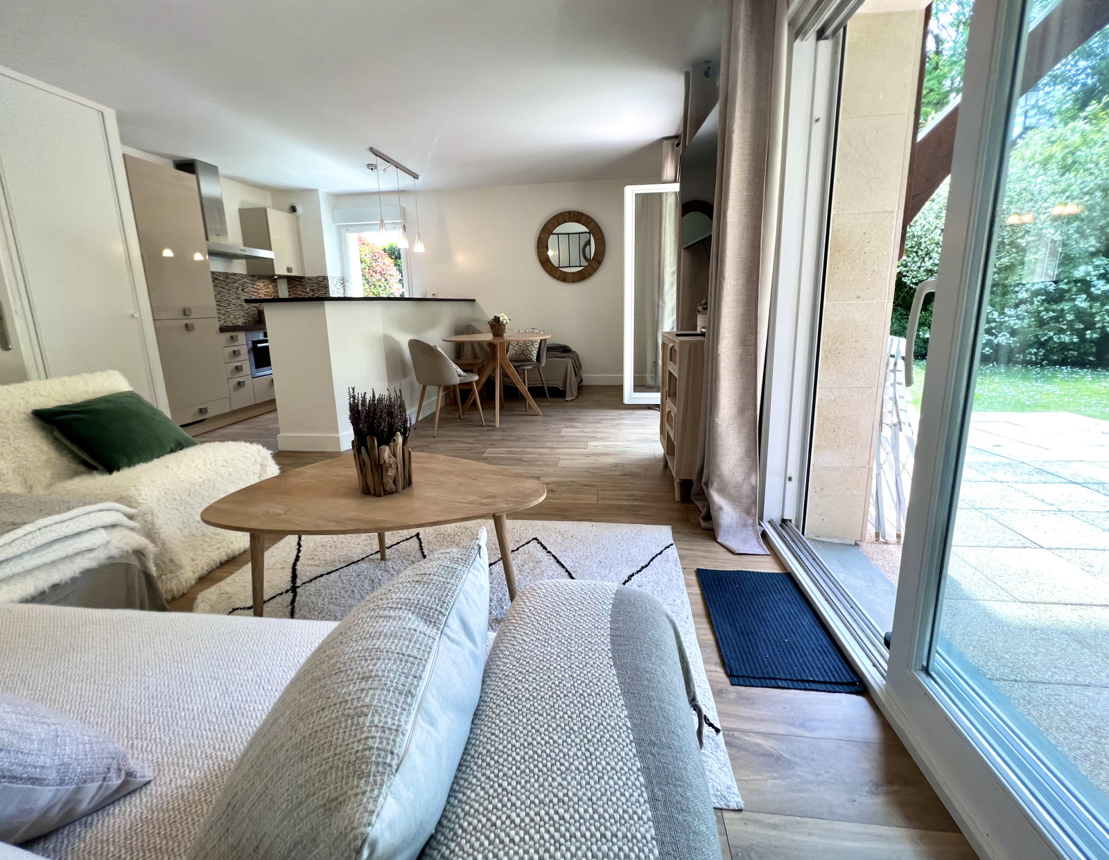 Dans une très jolie résidence sécurisée, appartement 2 pièces en rez de jardin en parfait état. Celui ci bénéficie d'une très bel ensoleillement (expo : sud-est) et du calme. Les commerces et la place Morny sont situés à 1km200, une piste cyclable permet de rejoindre la ville en sécurité à vélo. L'appartement est composé d'une entrée avec rangements, WC séparés, d'une chambre lumineuse, d'une salle de bains et d'un séjour avec cuisine américaine. L'appartement est situé en angle, et est entouré des deux cotés par son jardin privatif d'environ 160m².