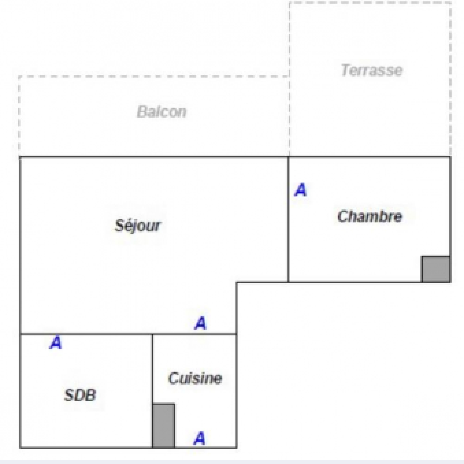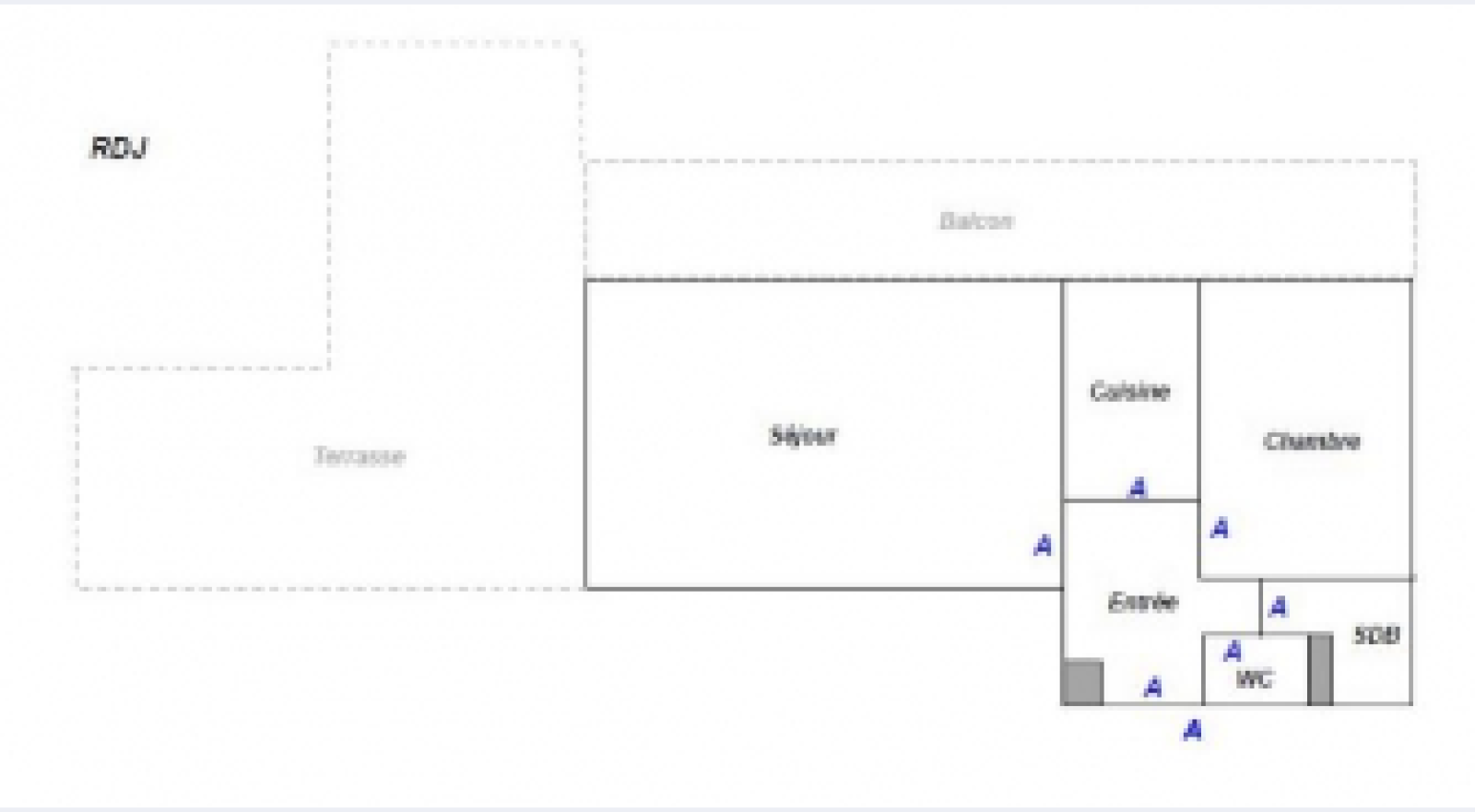 Le premier appartement est un 2P de 48 m² qui se compose : d'une entrée, d'un séjour donnant sur une terrasse de 75 m², une cuisine, une chambre et d'une salle de bains.