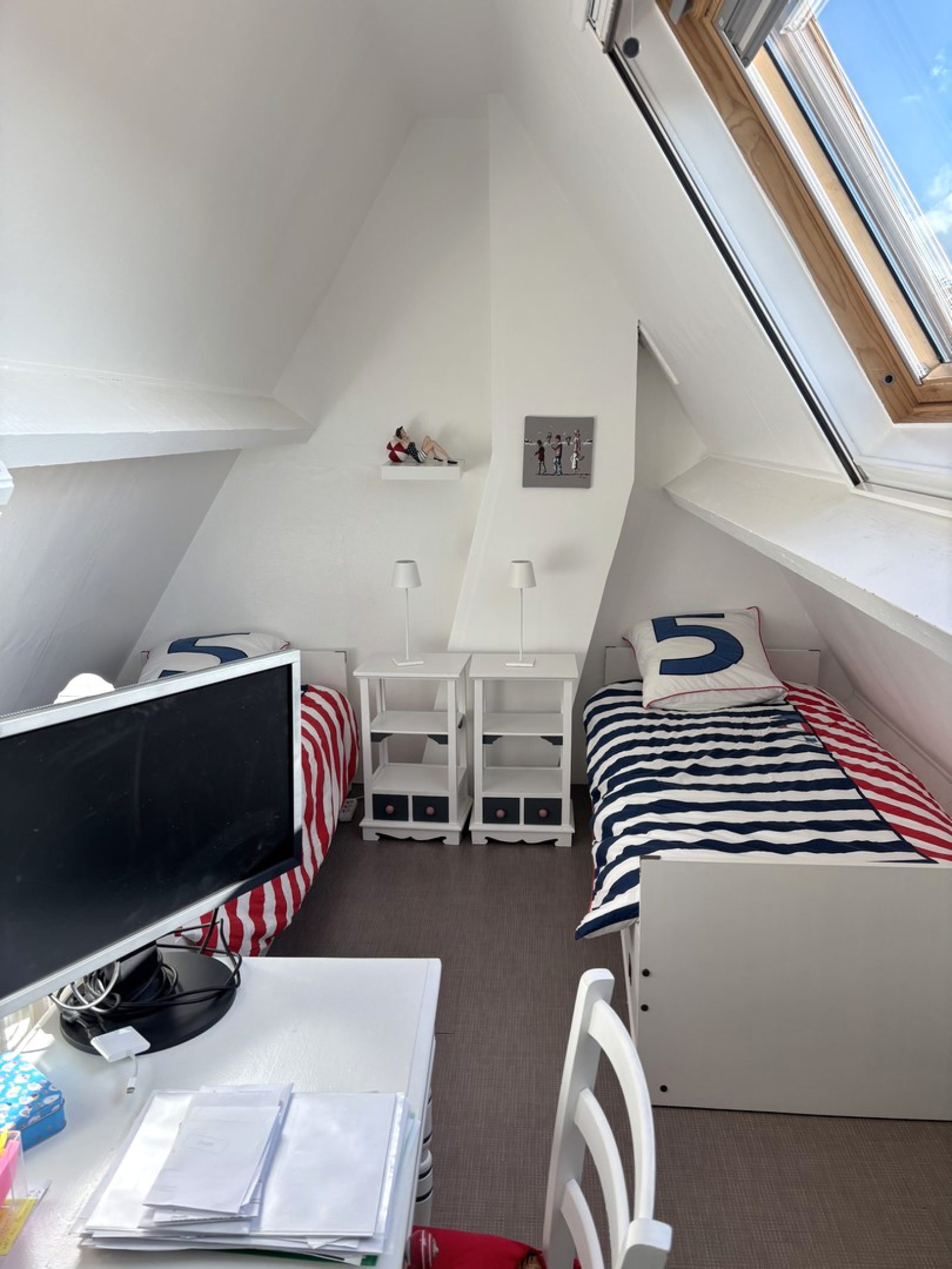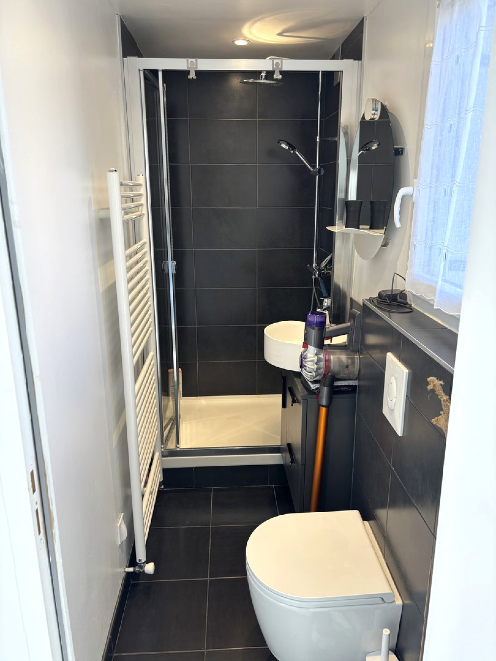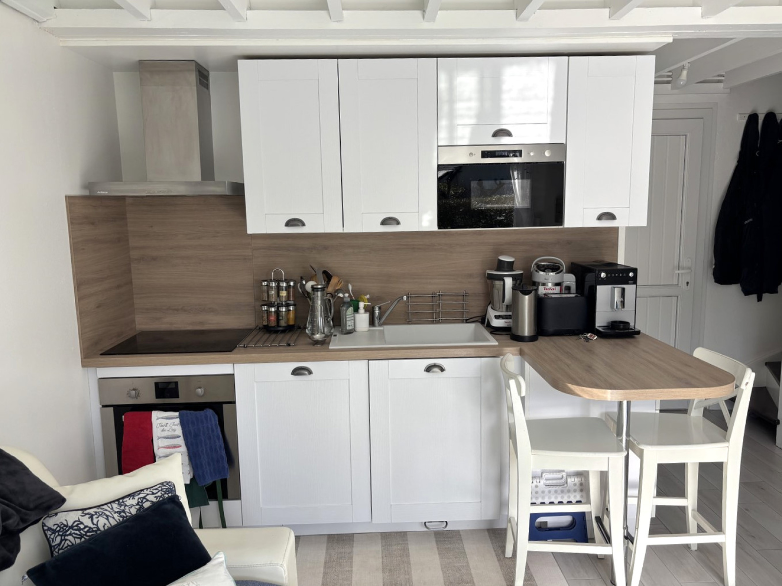 CHARMANT COTTAGE trois pièces, comprenant : Au rez-de-chaussée, un séjour-salon avec cuisine équipée et ouverte ainsi qu'une une salle d'eau avec WC. Au premier étage, une chambre, une pièce pouvant faire office de bureau donnant accès à l'escalier menant au 2e étage, une salle d'eau et un WC séparé. Au deuxième et dernier étage, une seconde chambre sous combles. Le cottage dispose d'un cellier, d'une place stationnement privative et d'un jardin exposé Sud.