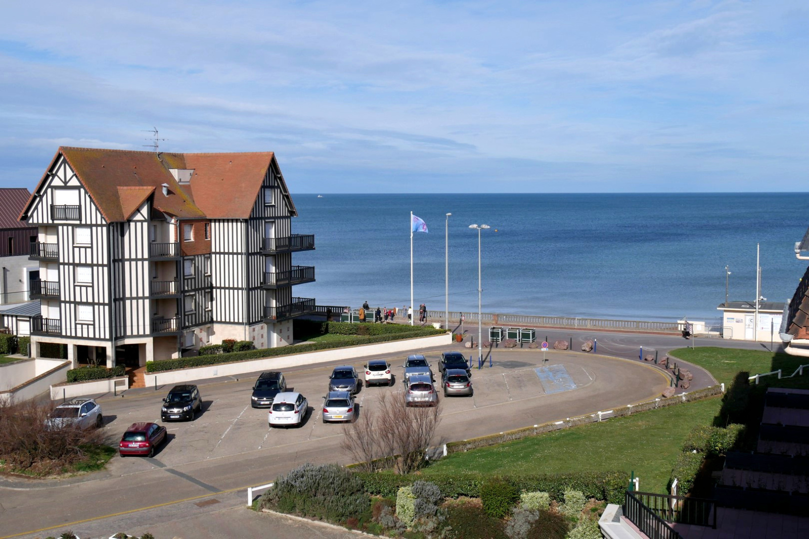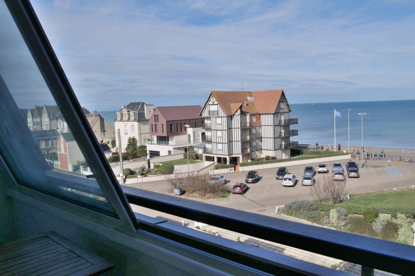 APPARTEMENT trois pièces comprenant : Une entrée avec placards, un séjour-salon lumineux, une cuisine équipée, une loggia VUE SUR LA MER, deux chambres VUE SUR LA DIVES dont une avec balcon, une salle d'eau et un WC séparé. Appartement traversant exposé Nord Ouest et Sud Est. Bien vendu avec une place de stationnement privative et une cave. Rare à la vente.