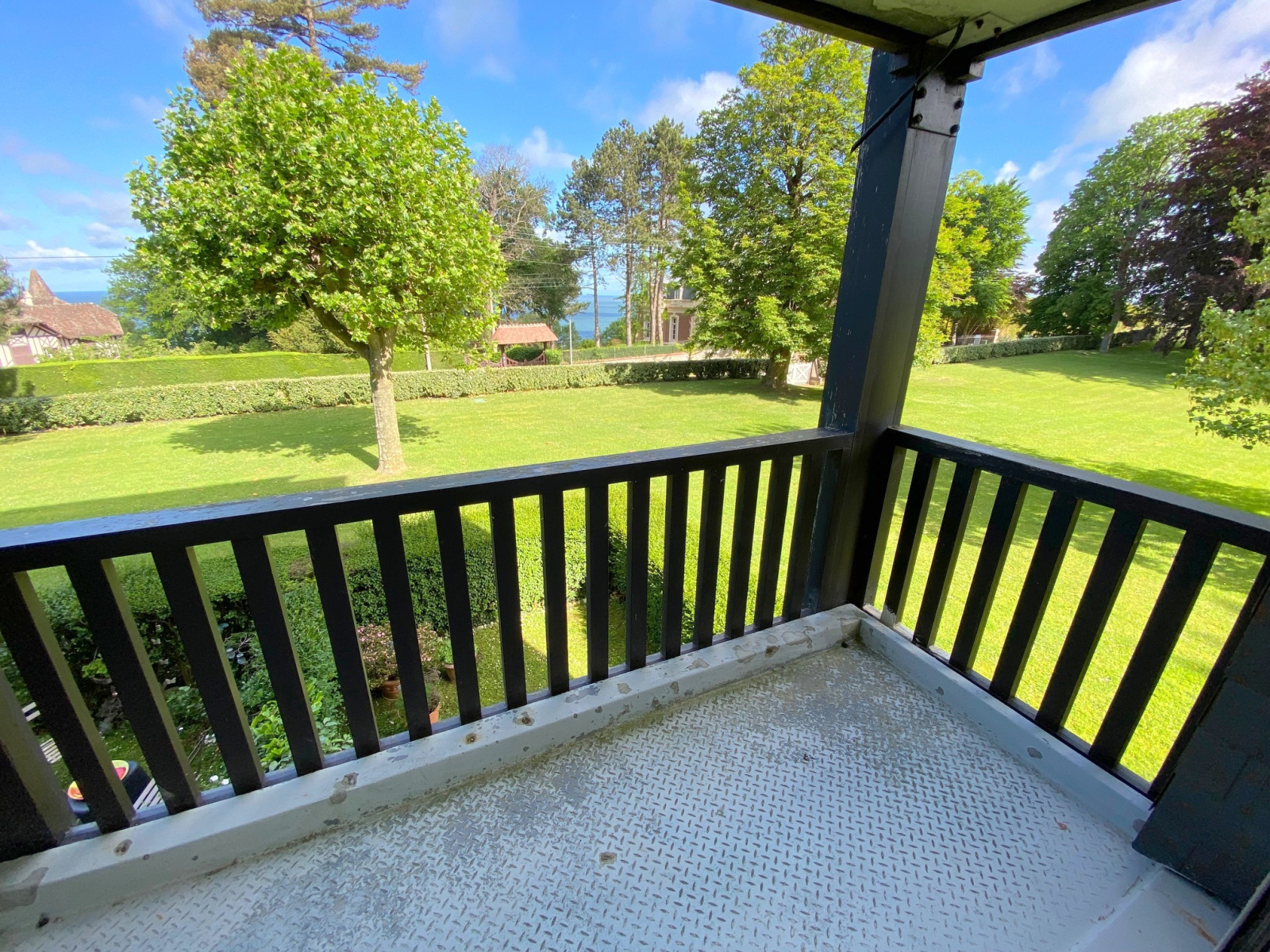 Balcon aperçu mer sans vis-à-vis, parc arboré, place de parking privative en extérieur, local vélo. Gardien à l'année.