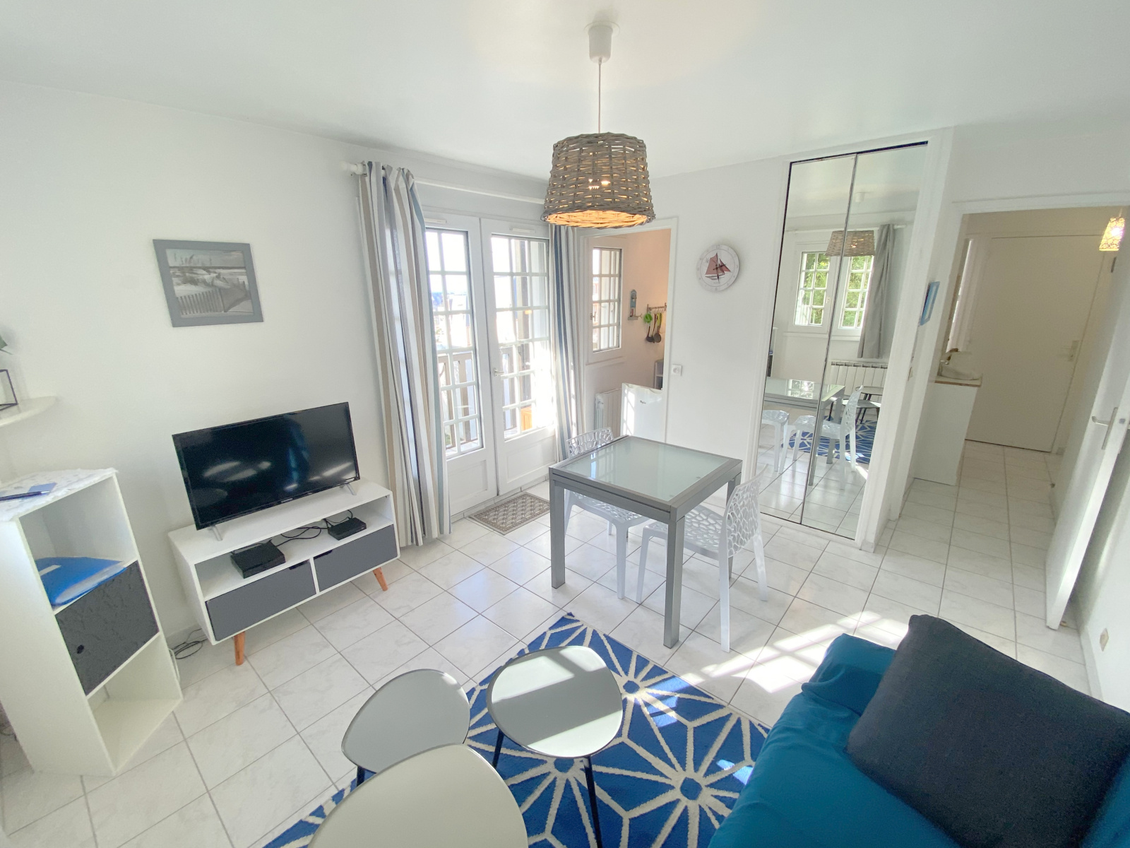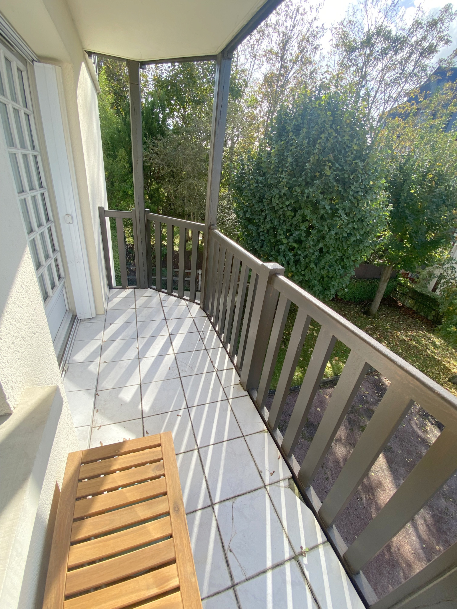 Appartement trois pièces, au premier étage par un escalier, comprenant une entrée, un salon salle à manger avec balcon, une cuisine, une salle de douche rénovée, deux chambres.