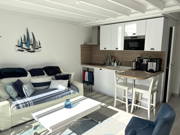 Appartement trois pièces comprenant une entrée sur salon, cuisine séparée avec cellier, deux chambres, une salle de bain. Double exposition Est et Ouest. Balcon vue dominante. Place de parking extérieure privative. Ascenseur et gardien. Proximité centre et plage. Prévoir travaux de rénovation. Contact Frédéric Rallon