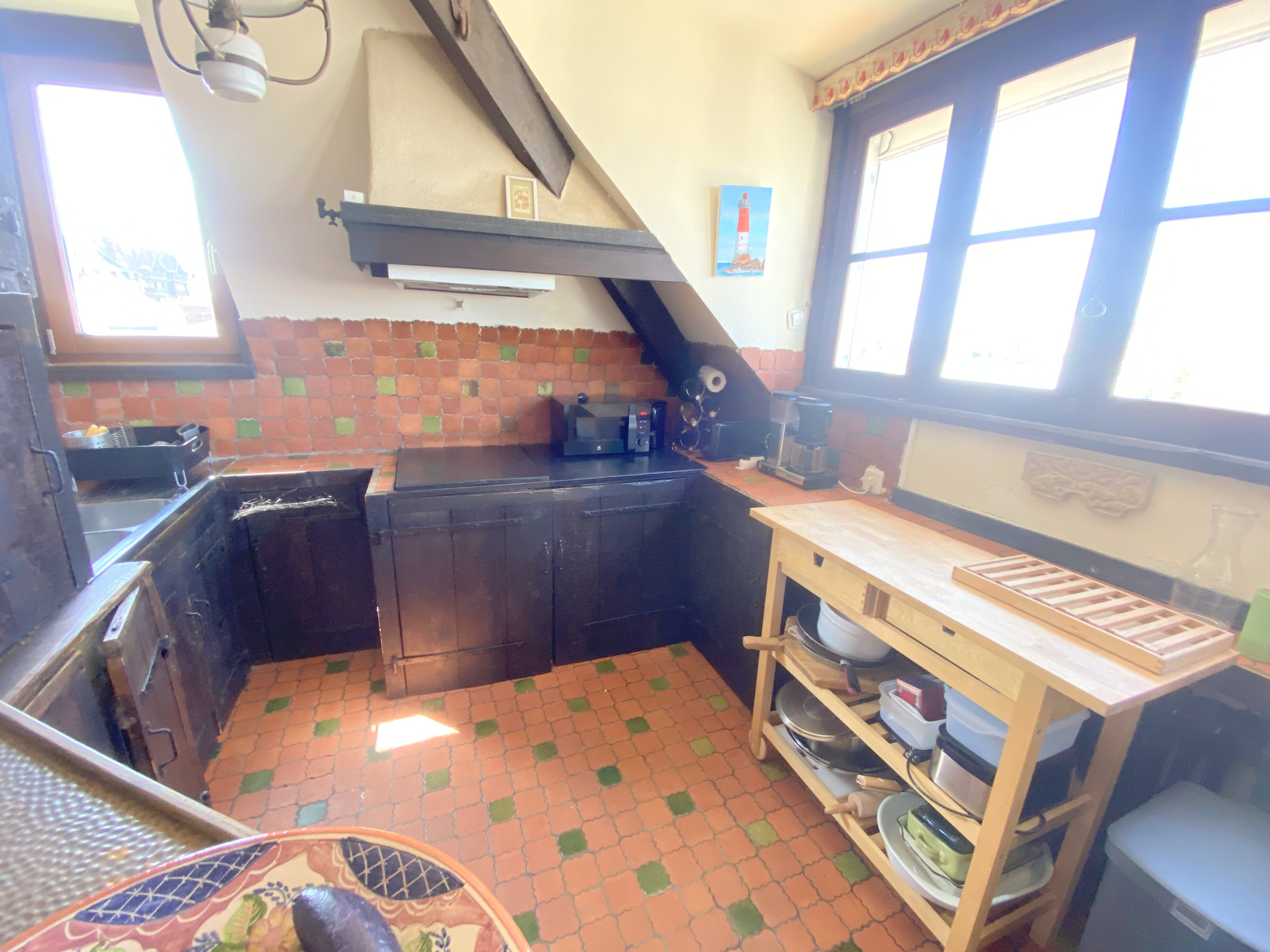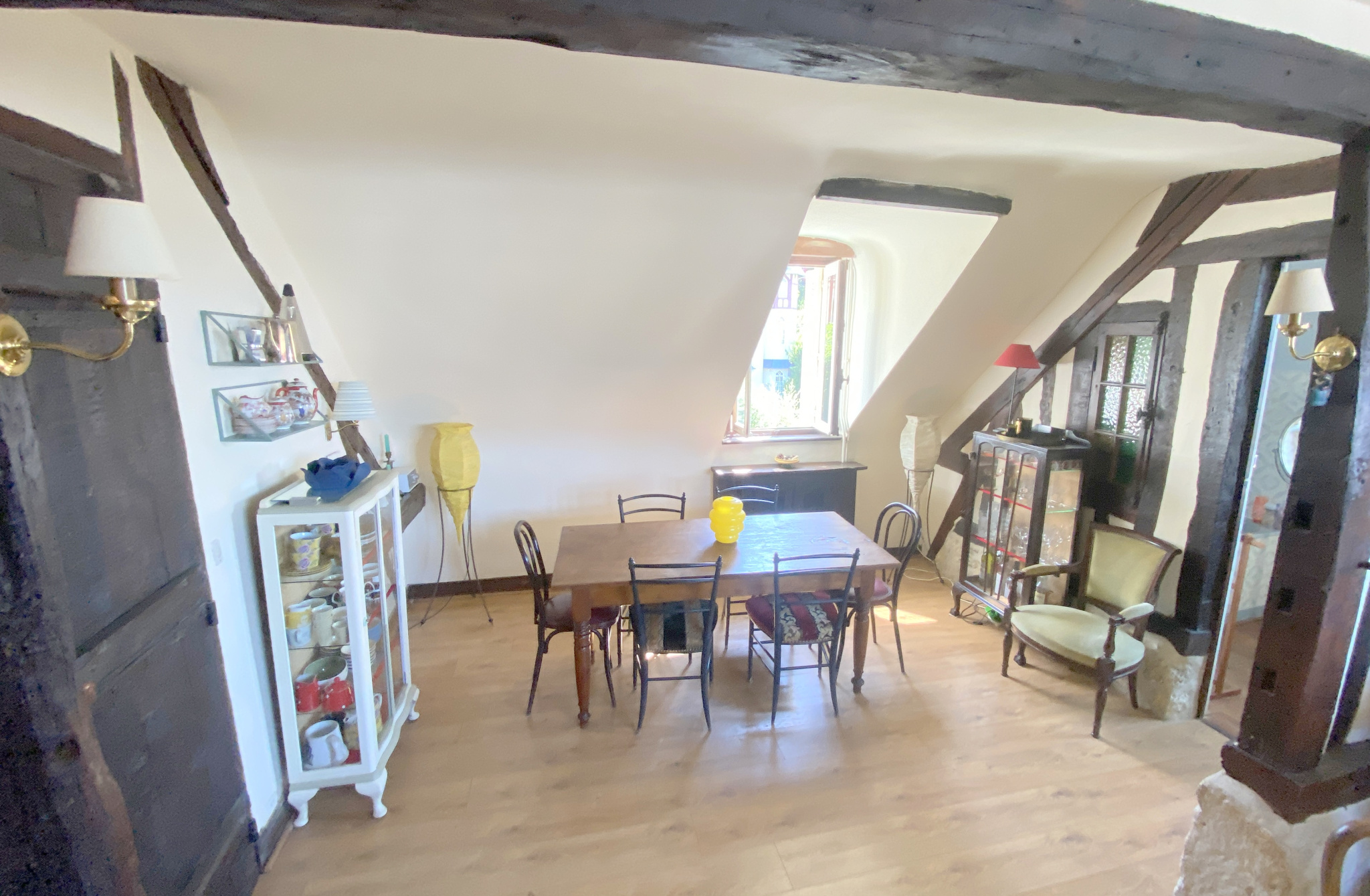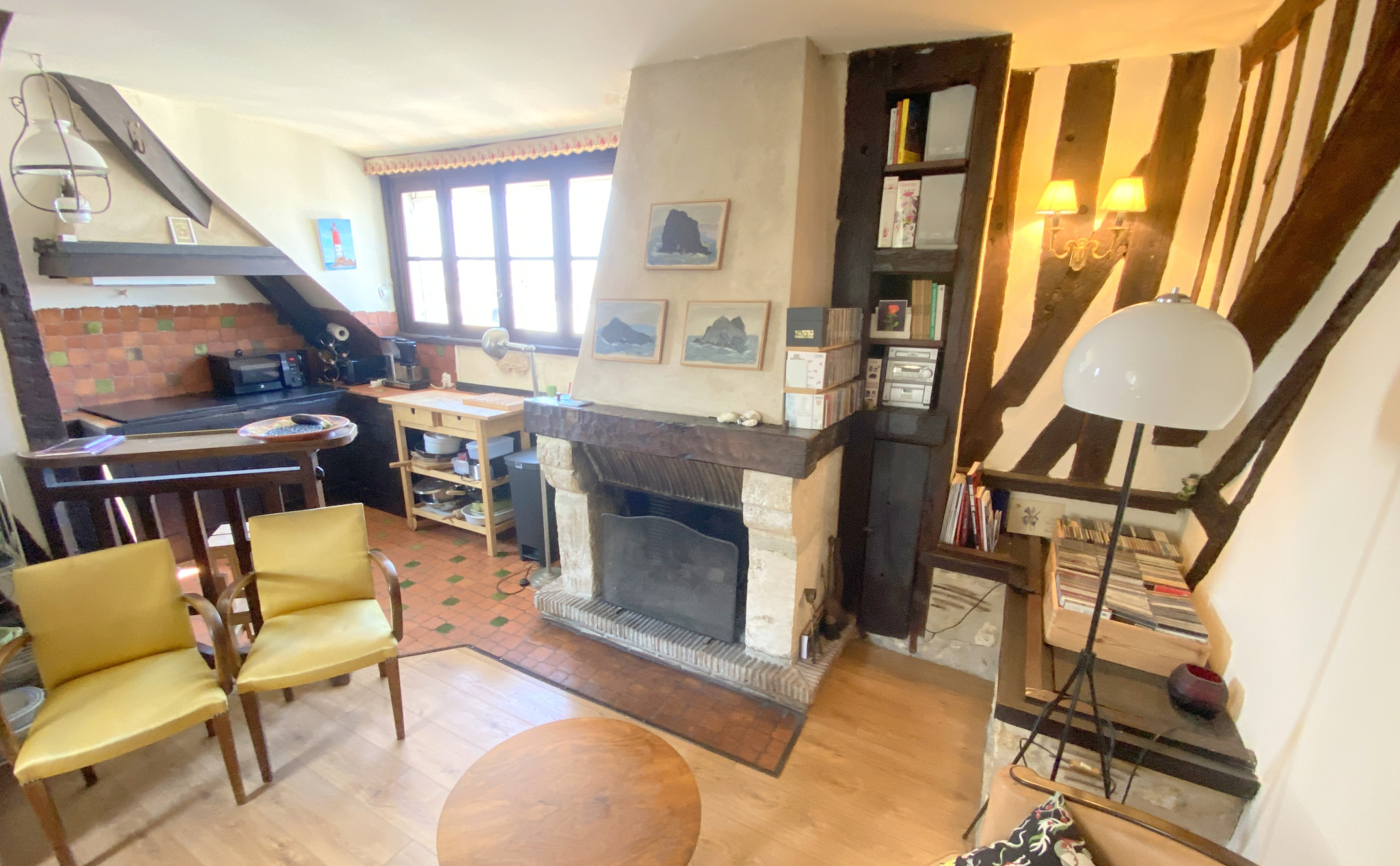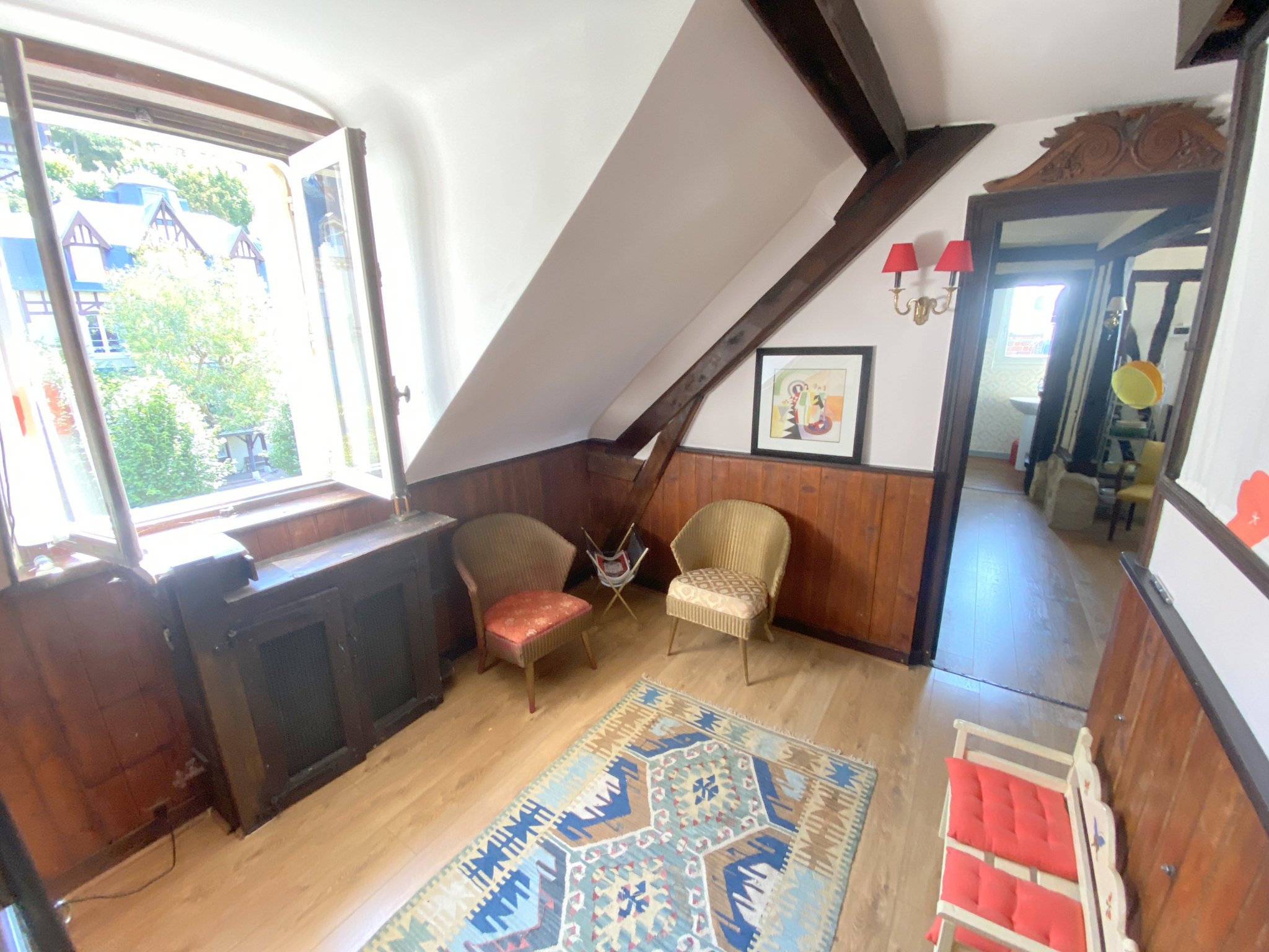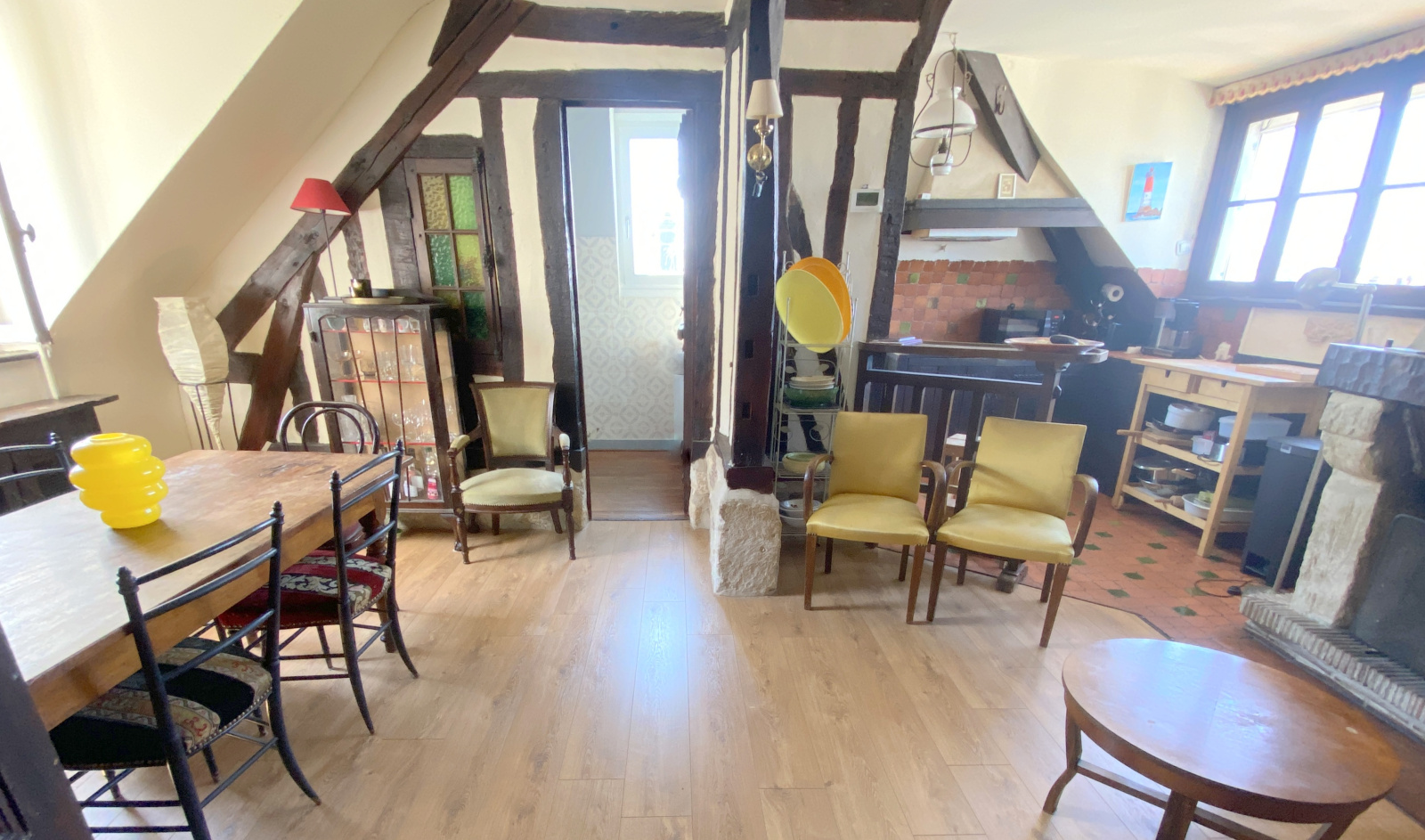 Au deuxième et dernier étage d'un immeuble de charme, appartement comprenant une entrée, un séjour avec cuisine ouverte et cheminée, une salle de bain, une salle de douche, trois chambres, une pièce supplémentaire à usage de bureau ou de chambre. Une cave.
