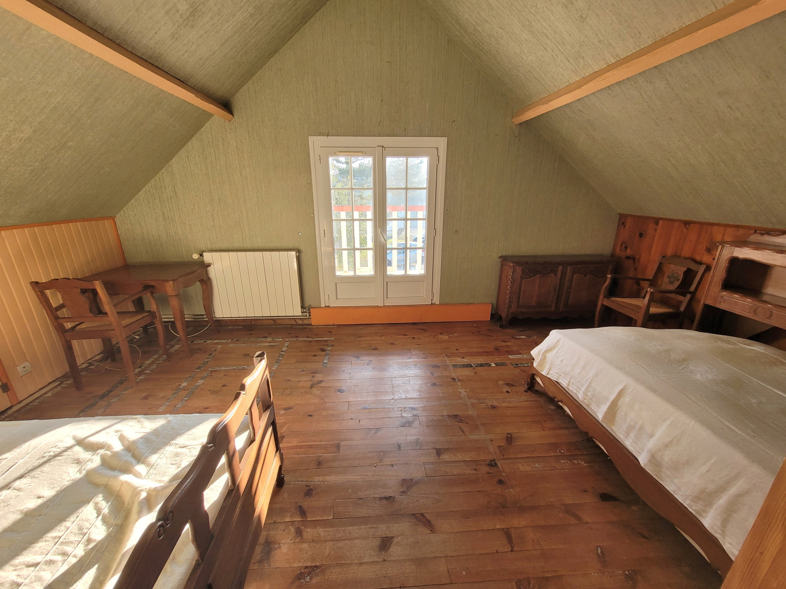 MAISON d'environ 110m² habitables comprenant, au rez-de-chaussée, une entrée avec placards, un séjour-salon, une cuisine et arrière cuisine, une véranda chauffée de 23 m² supplémentaires avec vue sur le jardin, une chambre avec placard et salle d'eau avec WC. A l'étage, un palier avec placard desservant deux chambres sous combles et une salle de bains avec WC.