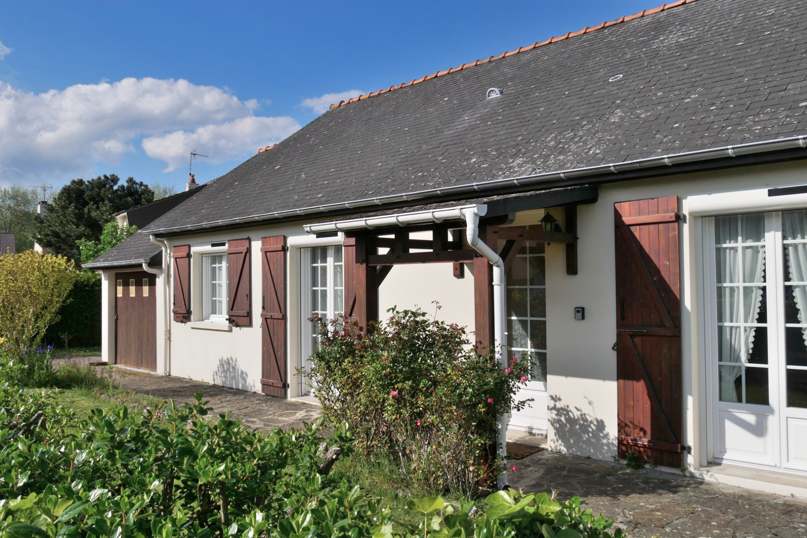 La maison dispose également d'un garage attenant avec atelier, d'un abri de jardin et d'un car-port idéal pour moto ou équipements nautiques