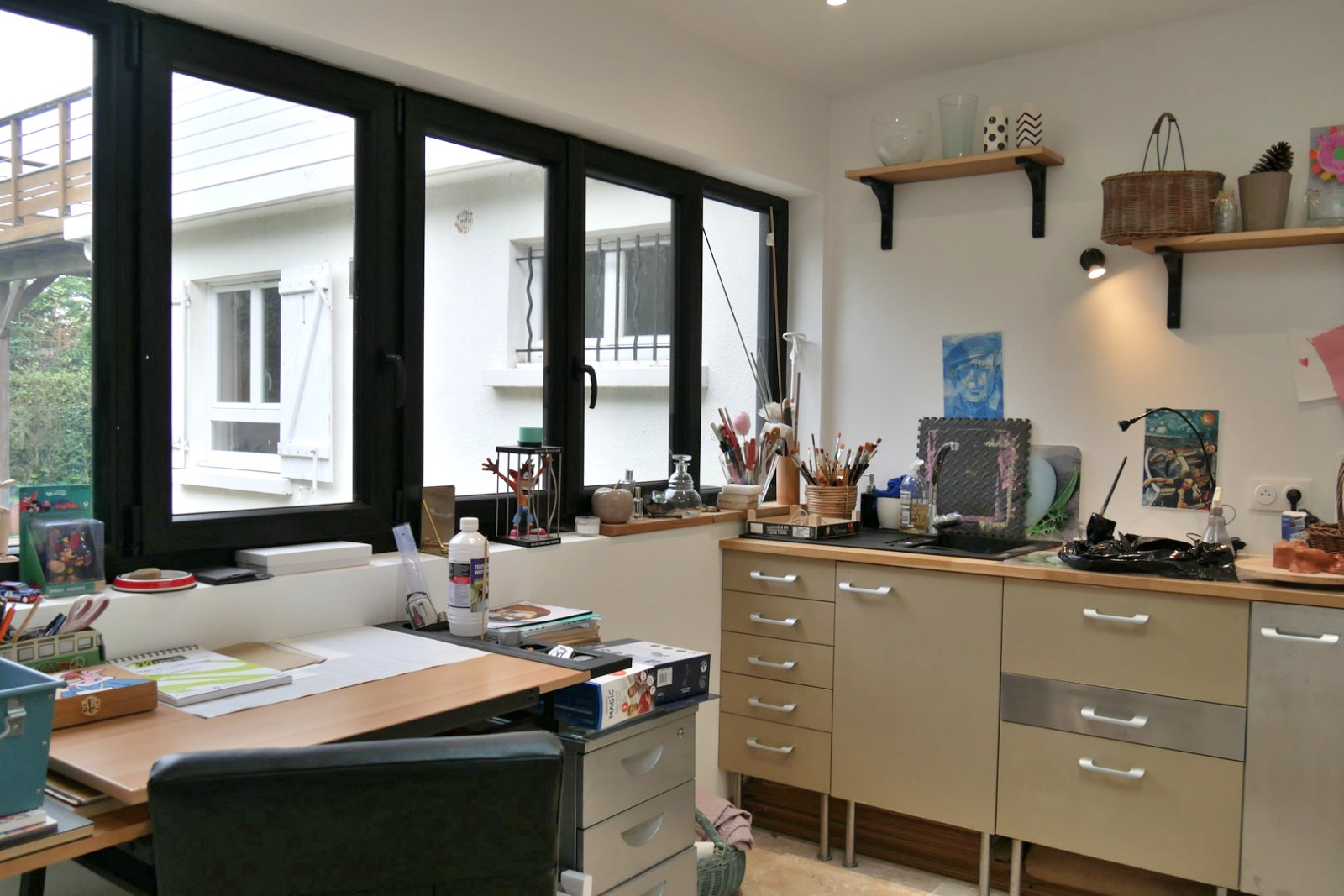 La dépendance, faisant actuellement office d'atelier, sera facilement transformable en studio. Elle comprend, un couloir d'entrée avec placard, une salle d'eau avec WC à aménager (arrivées d'eau et évacuations réalisées) et une pièce principale lumineuse avec coin cuisine et accès direct sur le jardin.