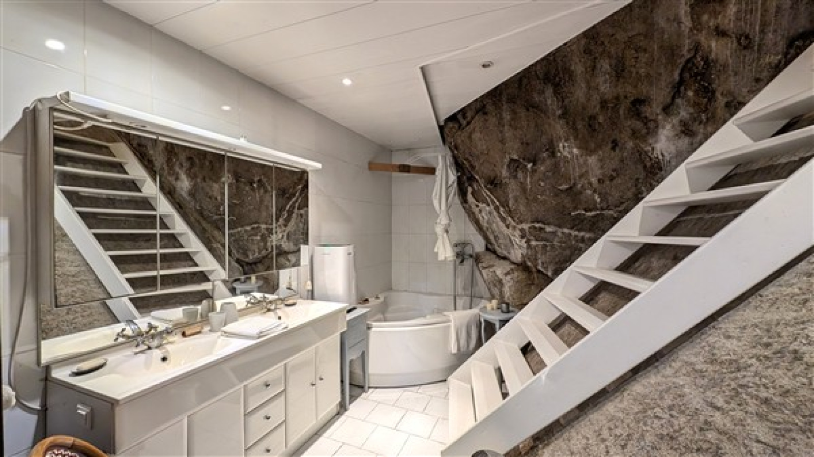 En rez-de-jardin : Bureau, salon télé (chambre supplémentaire possible), 3eme chambre avec salle de bains attenante,
