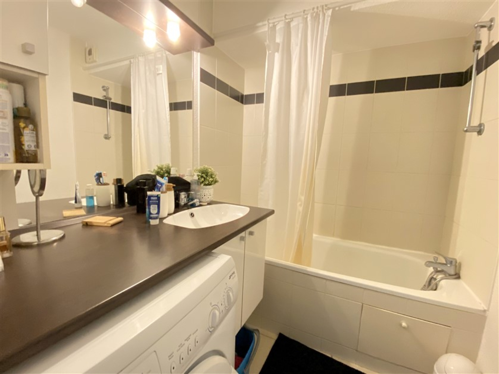 Cuisine ouverte sur la pièce à vivre, exposé sud, une chambre, une salle de bains avec WC indépendant.