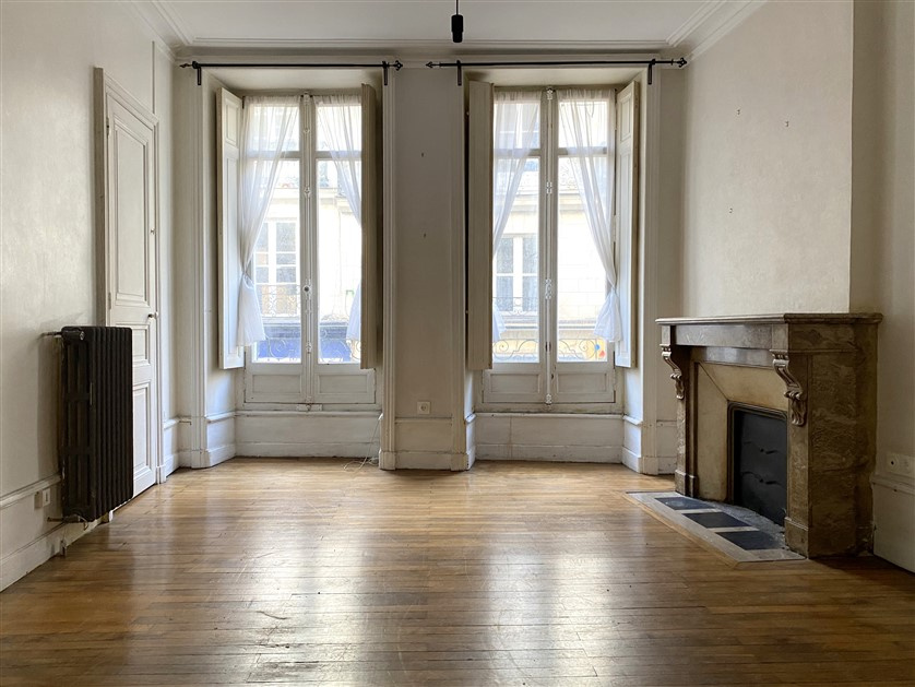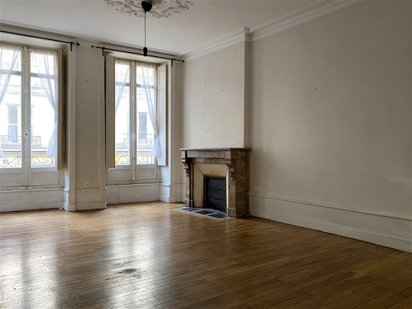 Seul sur le palier, le bien se compose d'une grande pièce de vie de 28 m² sur parquet et avec cheminée et moulures.