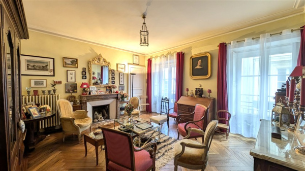 Au premier étage d’un immeuble 18eme parfaitement entretenu, 3/4 pièces de 84.86 m² loi-Carrez (86,64 m² en surface habitable) :