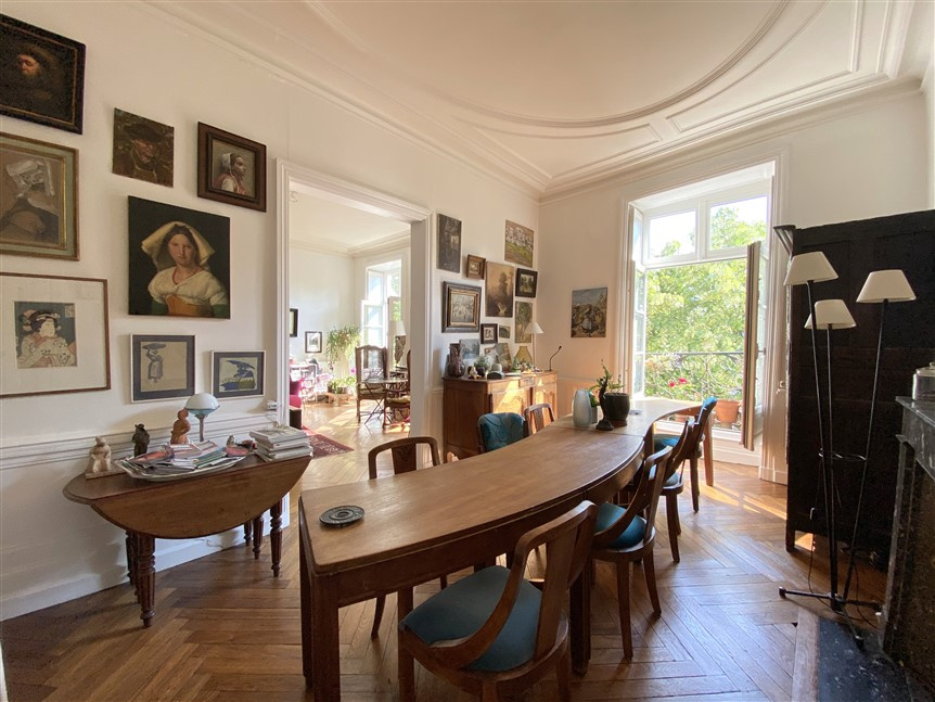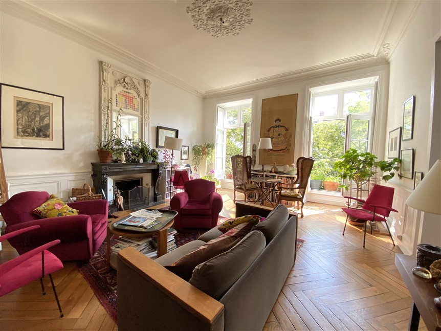 Au troisième étage d’un immeuble ancien bien entretenu, lumineux 5 pièces de 144 m² loi-Carrez :