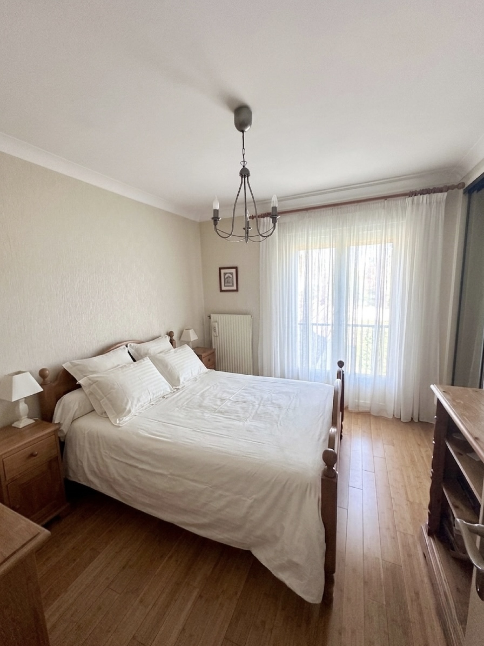 L'étage regroupe les trois chambres restantes, également avec rangements intégrés, une salle de douches et un wc.