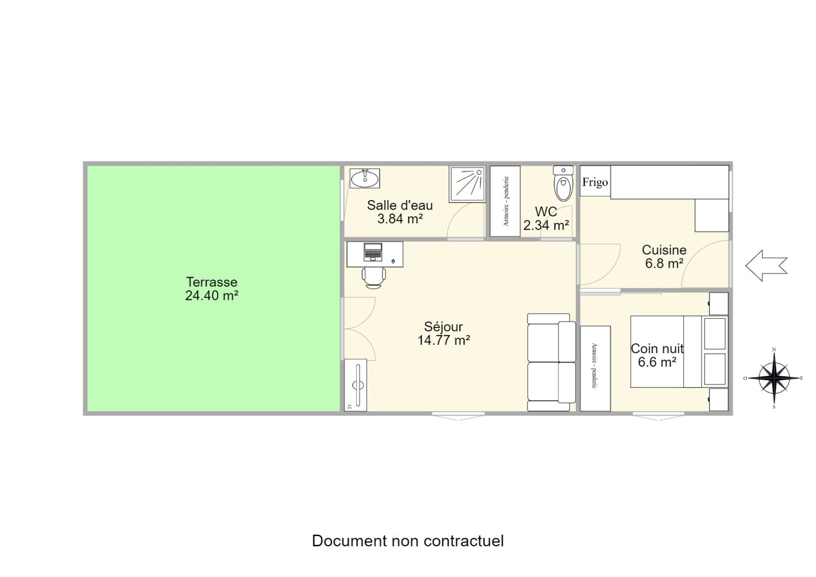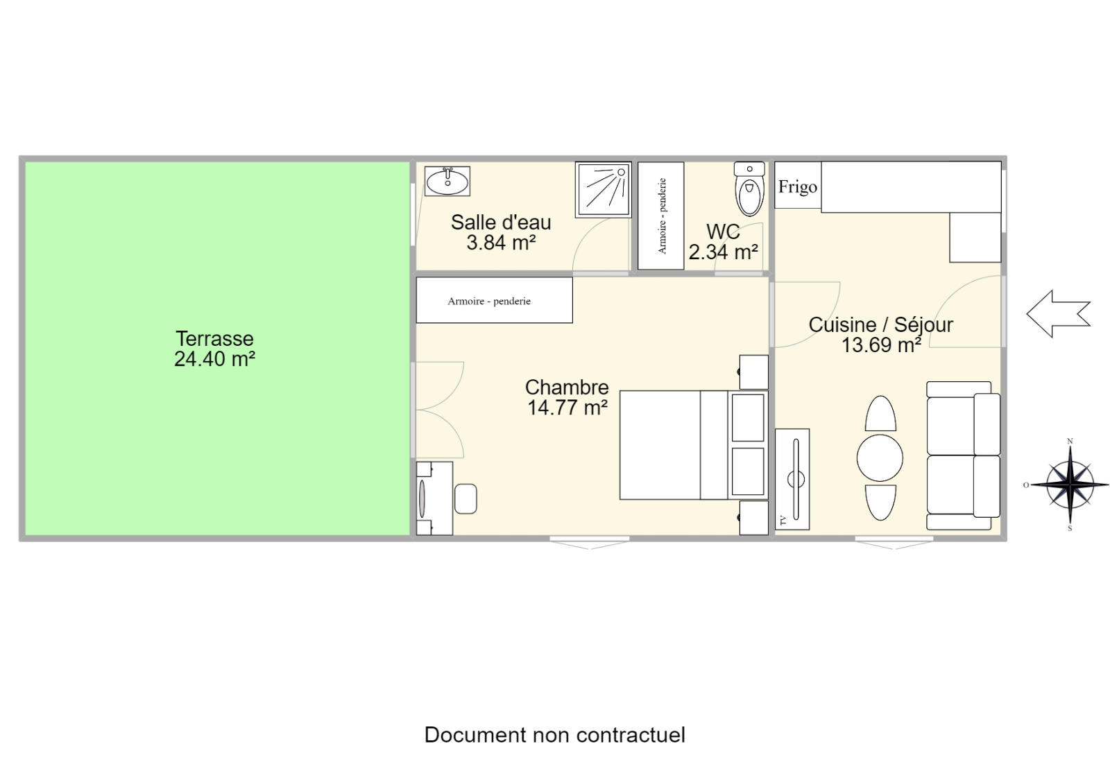 Appartement 2 pièces lumineux, en bon état général, de 35 m² env situé au 1er et dernier étage, comprenant : séjour avec cuisine ouverte de 13.7 m², une chambre avec accès terrasse de 25 m² env. orientée SUD, salle de douche et WC indépendant. Appartement située dans une petite rue, au calme, à 5mn des commerces, à 15 mn des gares Sèvres Rive Gauche Sèvres-Ville-d'Avray, 20 mn du métro ligne 9 et du Tram T2. Transports à proximité : Ligne N, Ligne L et U, Métro ligne 9, Tram T2, nombreux bus. Charges : 54 € / mois comprenant : eau froide, assurance de l'immeuble et syndic. Taxes foncières : 132 euros (2022). Type de chauffage : individuel électrique. Montant estimé des dépenses annuelles d’énergie pour un usage standard : entre 930 € et 1310 € par an. (Estimation selon DPE). Possibilité de louer ou d'acheter un box fermé en supplément.