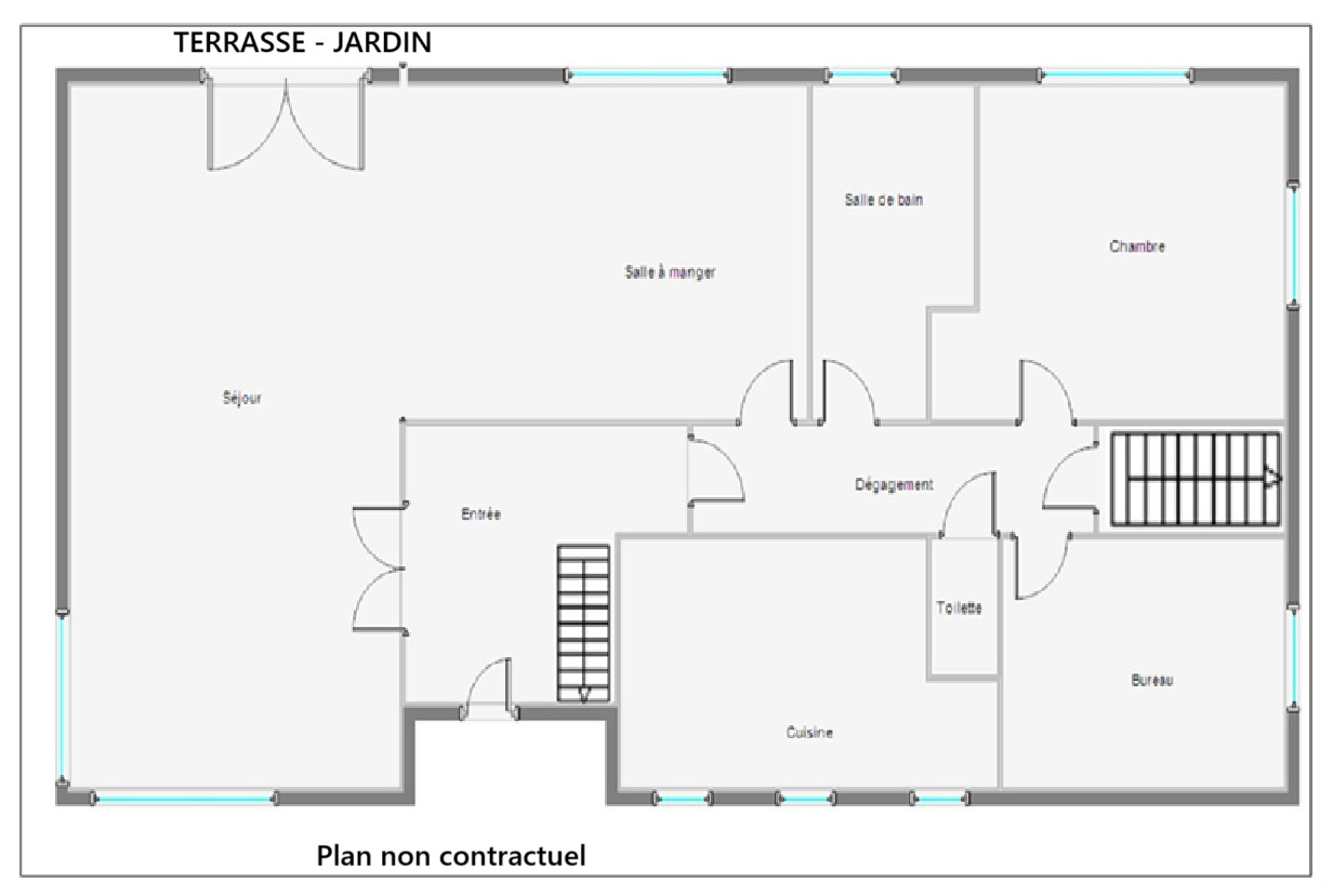 Belle terrasse de 17 m², jardin avec arbres fruitiers.